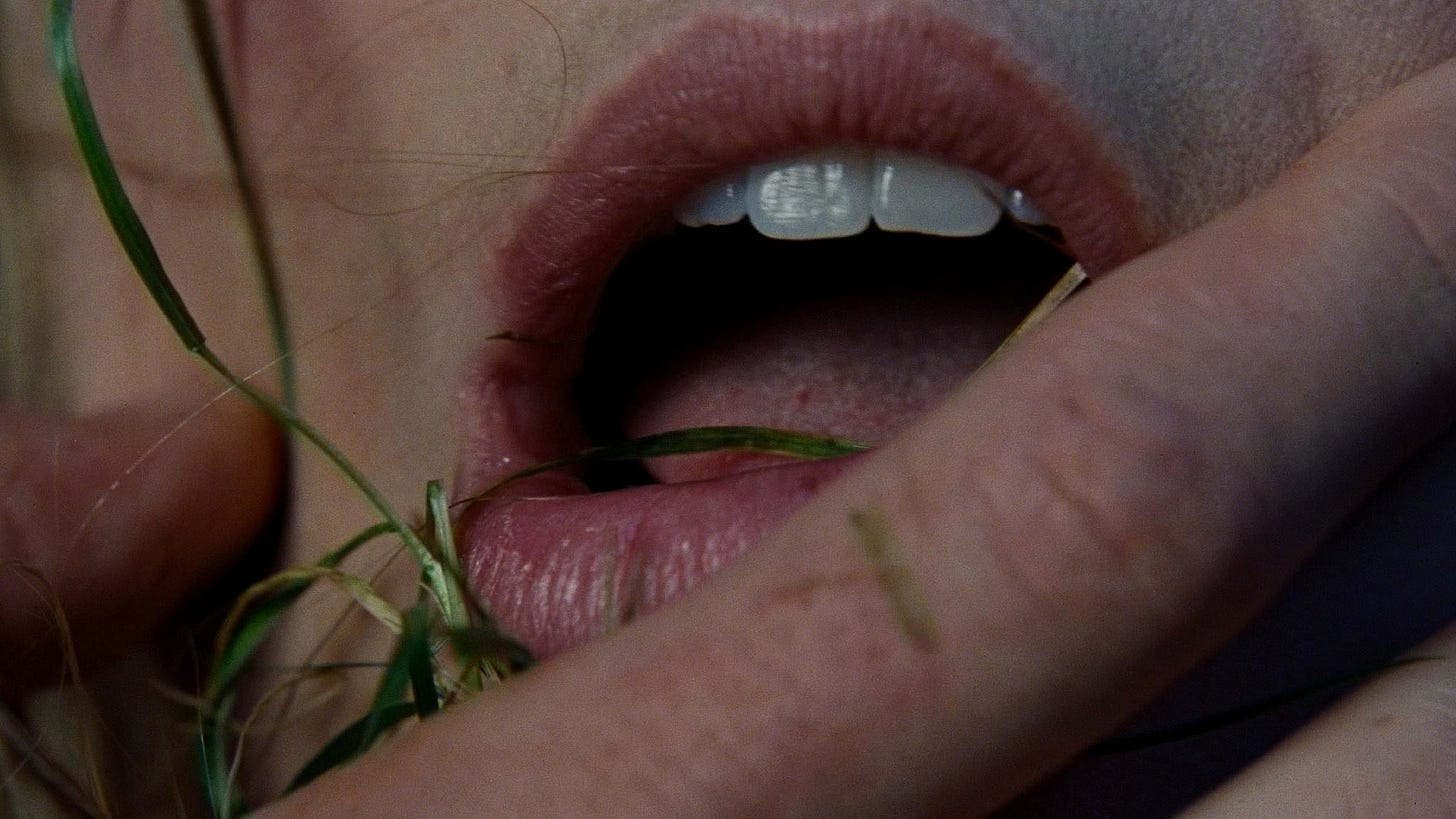 It is not that films should not take creative liberties with their source material or attempt reimagining well-known, much-loved tales. Many films have done it well, and meaningfully. But half the time I was watching “Wuthering Heights,” I felt like laughing, and half the time, I felt disgusted. There was nothing sexy about the squelching egg yolks, the dirty, grassy mouths, poor Isabella barking like a dog.1 “To be a whacher is not a choice. / There is nowhere to get away from it,” I remembered from Anne Carson’s “The Glass Essay” as I tried to look anywhere but the screen. I felt clowned, baited, like an “abject reptile”—and that, too, on my wedding anniversary.2