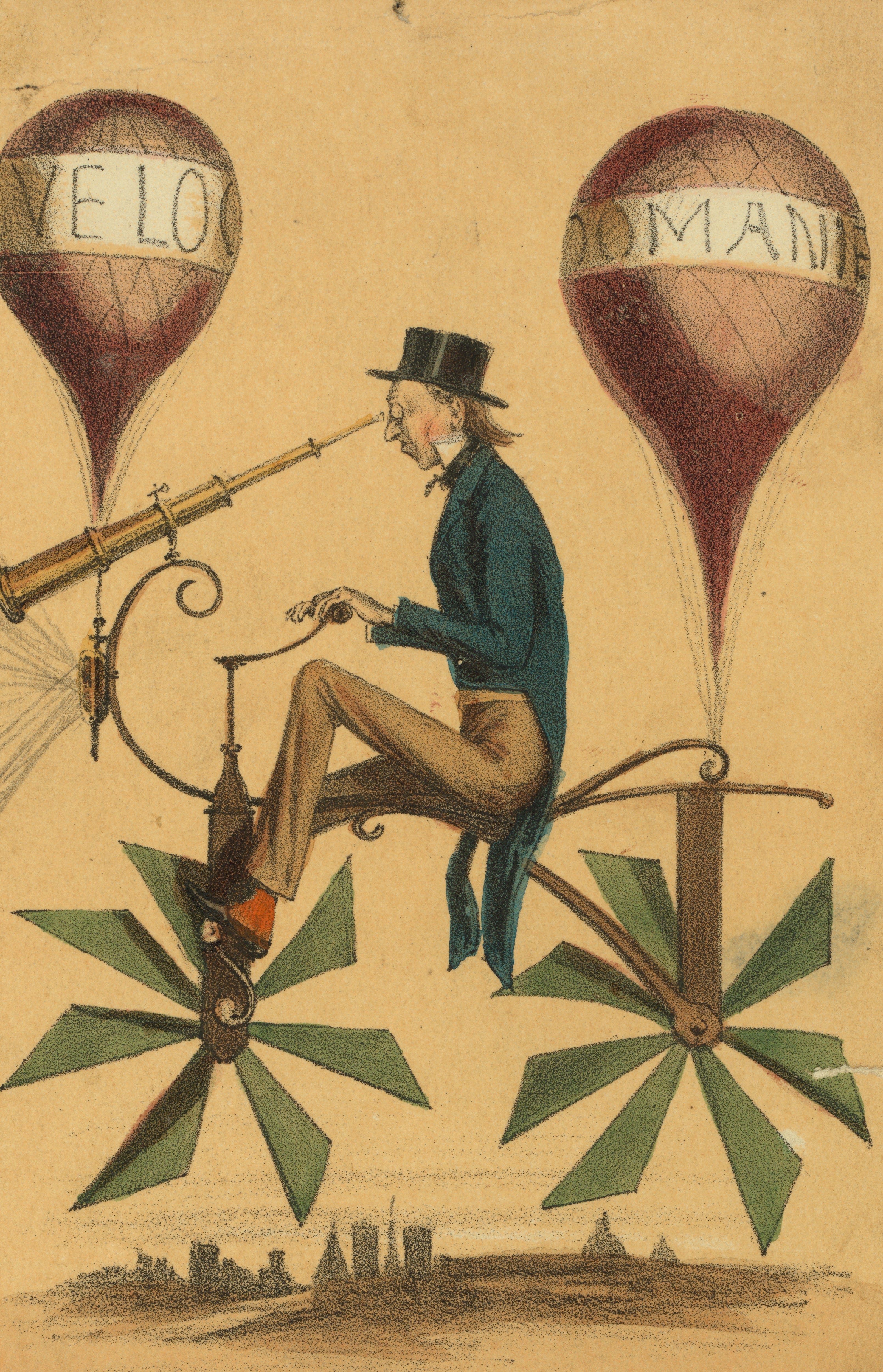 Utagawa Yoshitora, “America”: Enjoying Hot Air Balloons (1867): From about 1850 to 1880, Utagawa Yoshitora produced a prolific output of woodblock prints and book illustrations. In 1853, Commodore Perry led four ships into Tokyo Bay, opening up Japan to the United States and ushering in a period of trade and modernization. Yoshitora captures these changes in his scenes of foreign lands and peoples, with their foreign inventions and ways of life—France, England, and of course America are all realized in minute and colorful detail, and here the hot air balloons decked out with double American flags, lifting off past a larger American flag, gives you no chance to be mistaken about what country is being depicted.