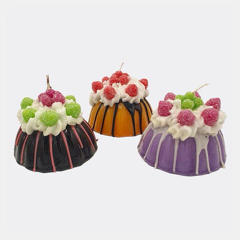 from Catbird NYC Cereria Introna Vanilla Frosting with Flowers Cupcake Candle ($25): This cupcake candle looks good enough to eat, but don’t eat it. It is made of paraffin wax, which actually, as it turns out, is safe to eat in small amounts, but in large amounts can cause intestinal obstruction, nausea, vomiting, abdominal pain, constipation, and wax poisoning. If, however, you can resist the urge, it makes for a very nice decorative object. Put it on a dresser or nightstand or desk or coffee table or bookshelf. Even better, the next time you host a dinner party, bring out some these candles and a bunch of real desserts and have your guests play a little guessing game. Just kidding! That would probably bad, considering the effects of paraffin wax consumption as delineated above. Below are some more beautiful delicious(-looking) candles from Cereria Introna, which you can buy here, here, and here.