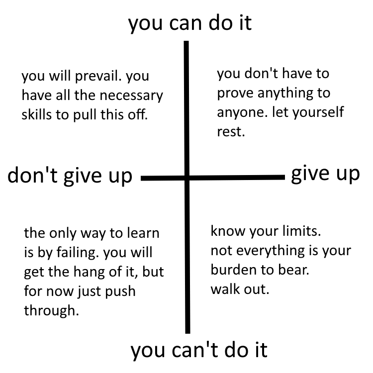 This graphic by mudwisard on Tumblr: being able to find the right quadrant for any given situation is such a relief.