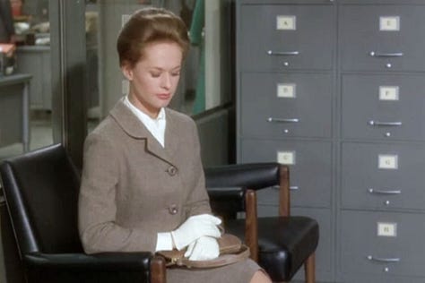 Tippi Hedren as Marnie Edgar in Marnie (1964): On Christmas night, I rewatched Alfred Hitchcock’s Marnie (1964) with my mother, and I included it here because it reminded me of my list of 9 Unhinged Women in Film Who Shaped Me. Marnie certainly starts off as unhinged—she’s a serial thief—but becomes far more sympathetic as the story goes on. One thing my mother and I loved about her was how put-together and poised and well-dressed and elegant she was, even while committing crimes, and her careful, precise way of speaking. I love how women of that era were so neat and proper, with their gloves and hats and the way they matched their nails to their lips. However, Marnie is also highly intelligent, a spirited horsewoman, and in scenes with her co-star Sean Connery, she can give back as good as she gets. In 2025, I’d like to channel a bit of Marnie’s put-together-ness, elegance, and mysteriousness.