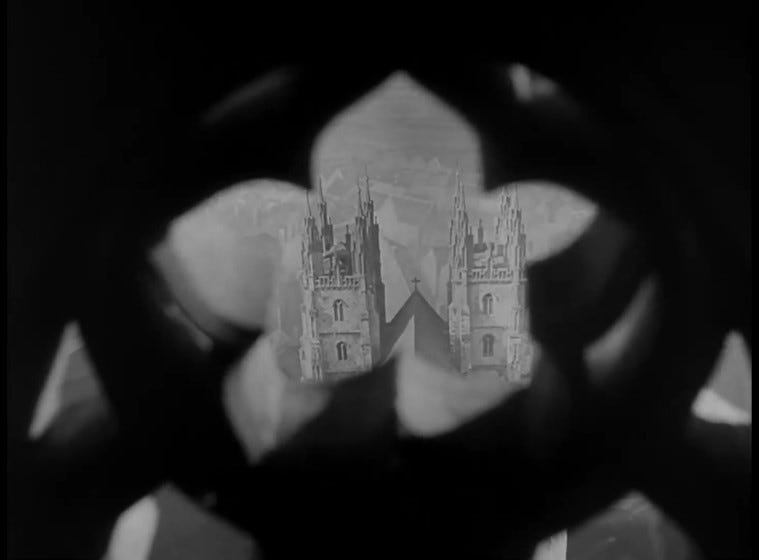 A Canterbury Tale (1944)—“You have to dig to find out about people as well as roads.” A British soldier, an American soldier, and a British “Land Girl” meet in a small town near Canterbury in the midst of WWII. For all three, Canterbury is a pilgrimage. For all three, a miracle awaits there. When Bach plays on the organ of Canterbury Cathedral and light shines in through the big stained glass window, I get chills.
